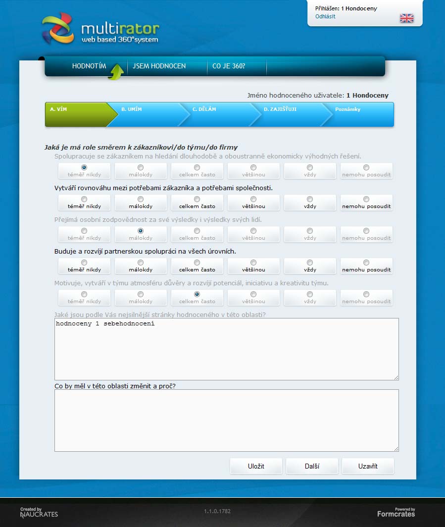 • Administrace: administrace této aplikace a tím celého procesu hodnocení může probíhat zcela na naší nebo Vaší straně nebo lze úlohy rozdělit dohodou.